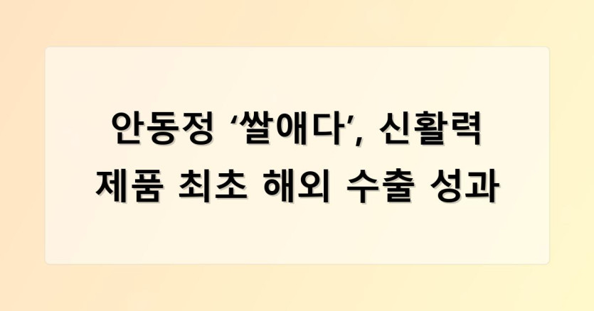 안동정 ‘쌀애다’, 신활력 제품 최초 해외 수출 성과