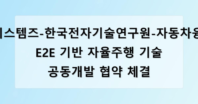 --어빌리티시스템즈는 한국전자기술연구원(KETI) 인공지능연구본부, 자동차융합기술원 모빌리티연구본부와 지난 11월 7일 어빌리티시스템즈 본사에서 E2E 기반 자율주행 기술의 연구개발 및 실증을 공동으로 추진하기 위한 업무협약(MOU)을 체결했다고 밝혔다.