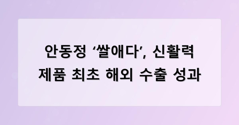 안동정 ‘쌀애다’, 신활력 제품 최초 해외 수출 성과
